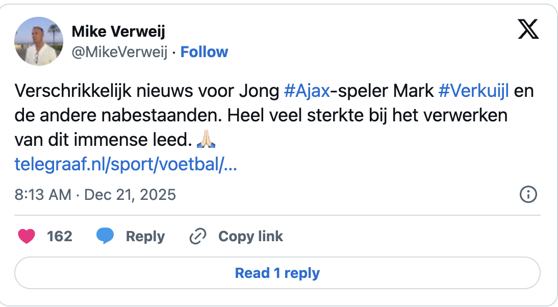 Vriendin Ajax-speler (21) overleden na aanrijding